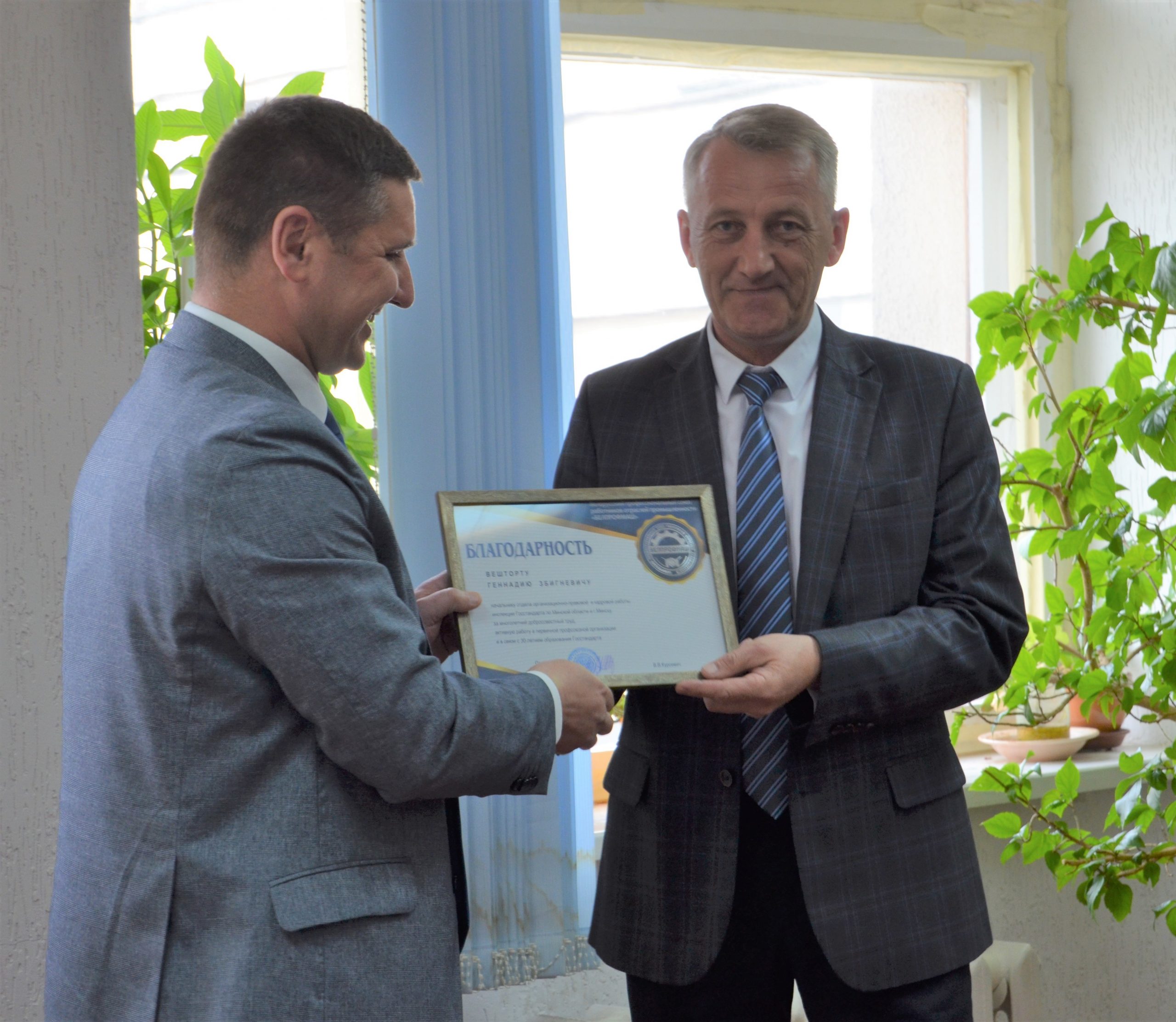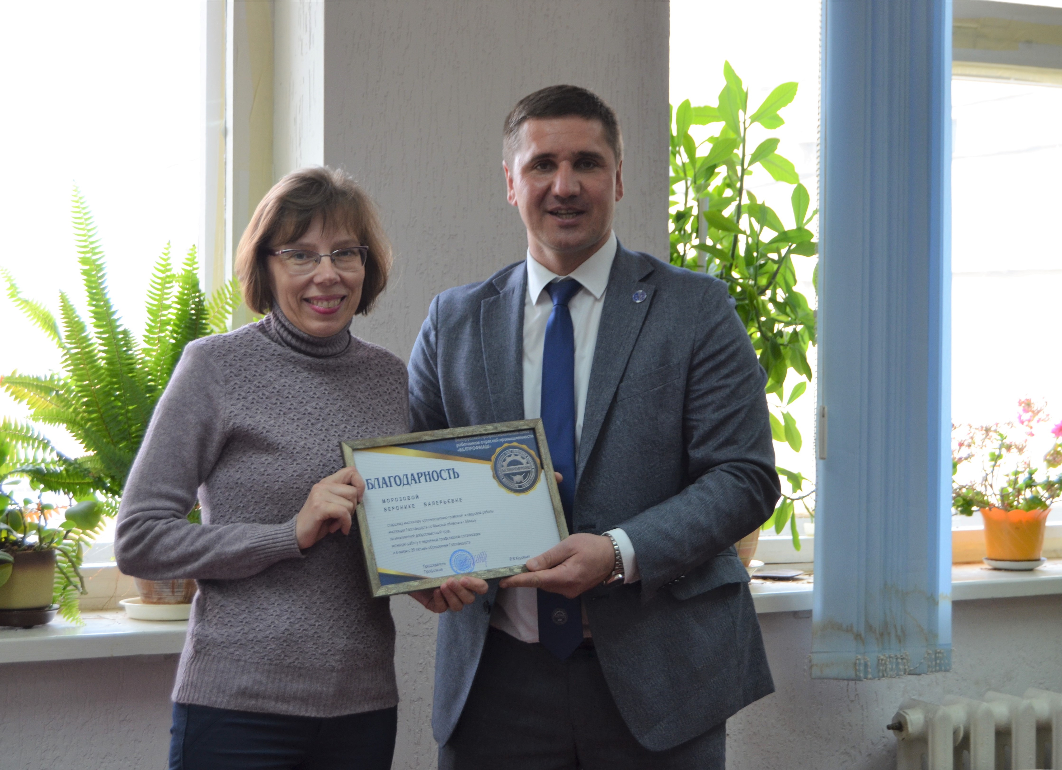 Руководство инспекции совместно с Председателем Белорусского профессионального союза работников отраслей промышленности «БЕЛПРОФМАШ» Курсевичем В.В. и Председателем ППО инспекции Липецкой Ж.И. 20.05.2022 в торжественной обстановке поздравили сотрудников инспекции со Всемирным Днем метрологии. Сотрудники инспекции, достигшие значительных результатов в служебной деятельности и общественной жизни, были награждены Грамотами и Благодарностями Белорусского профессионального союза работников отраслей промышленности «БЕЛПРОФМАШ», Благодарностями ППО инспекции Госстандарта по Минской области и г. Минску «БЕЛПРОФМАШ».