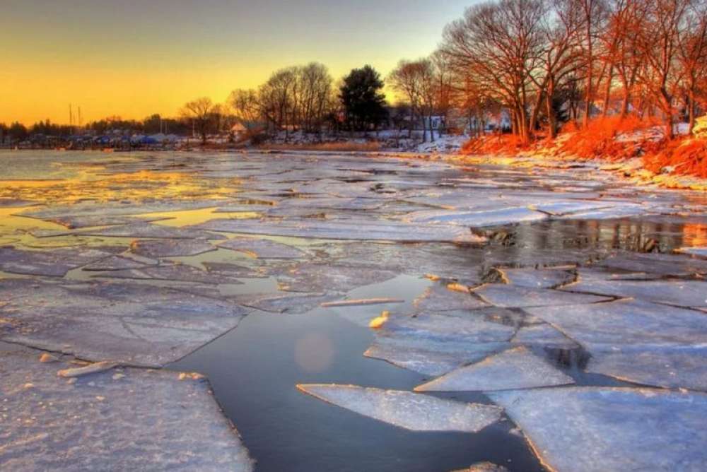 - Весенний лед, покрытый снегом, быстро превращается в рыхлую массу.